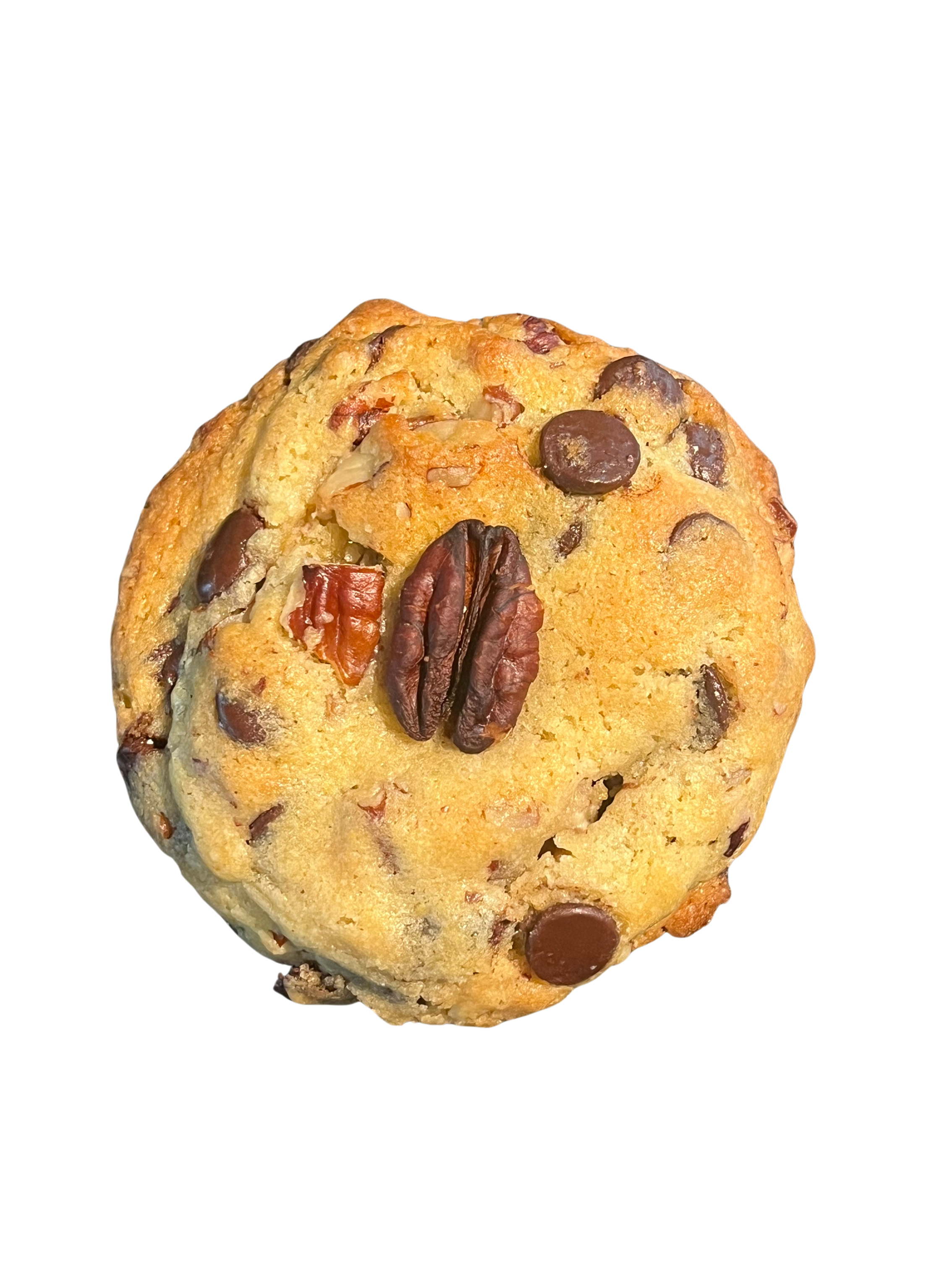 Nos cookies sont proposés dans un style « chewy »: un extérieur croquant et un intérieur encore moelleux. Ils pèsent environ 80g pièce et sont disponibles à l’unité ou selon la composition de votre choix.